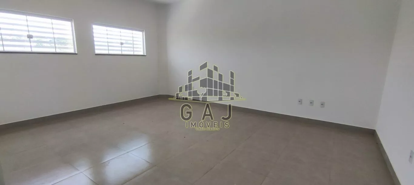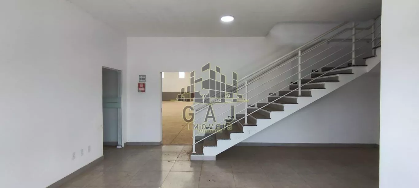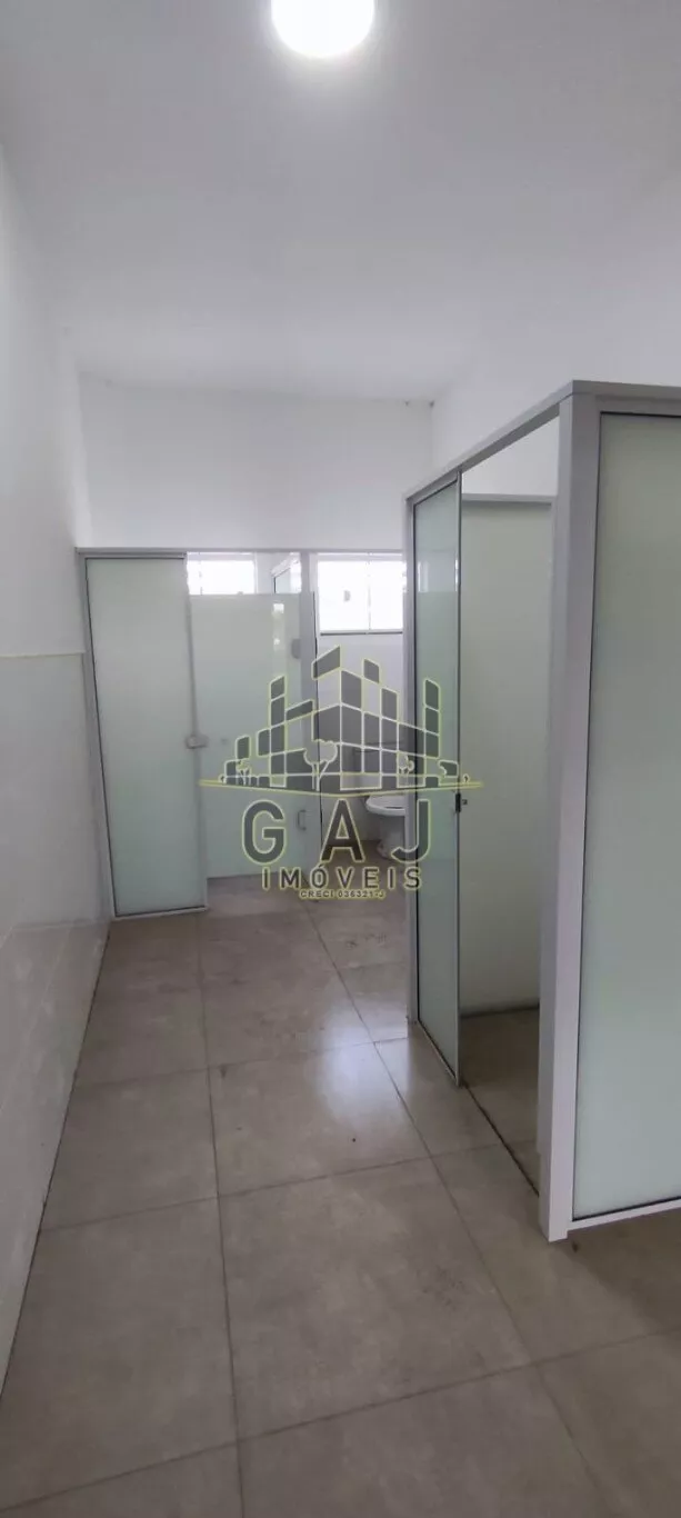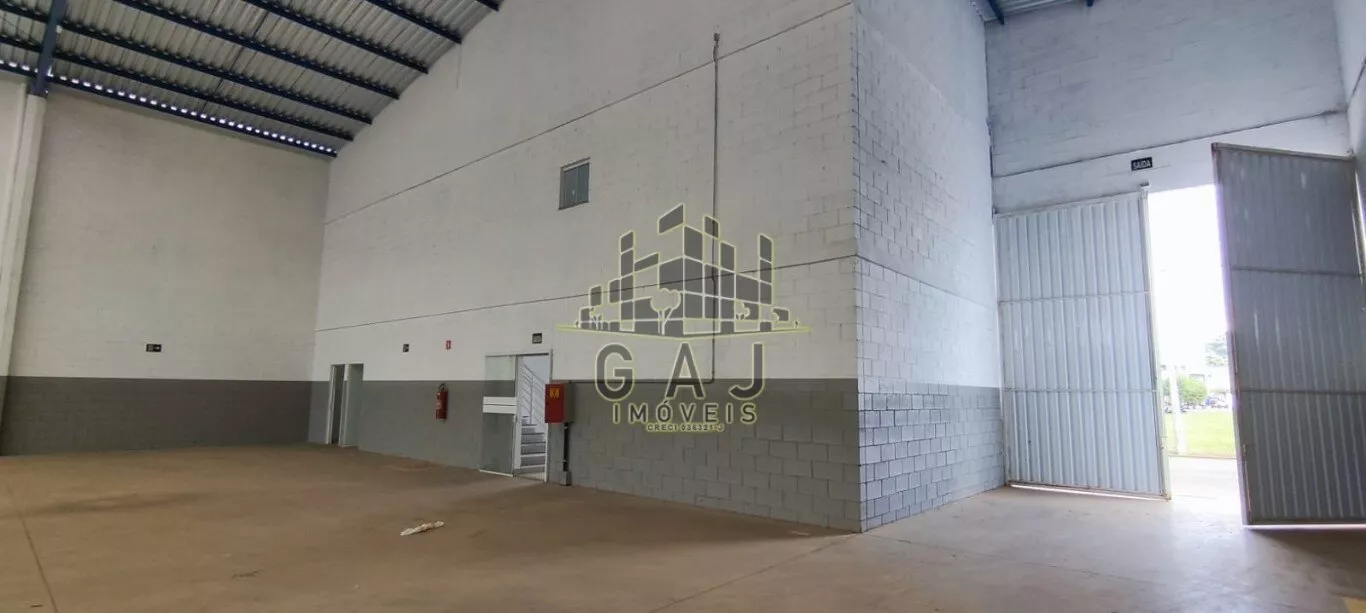 Salão industrial novo. Amplo espaço com parte administrativa completa. Sendo escritórios com banheiros masculino e feminino, ampla parte de recepção, vestiário masculino e feminino. Duas entradas, sendo uma com doca e outra plana.