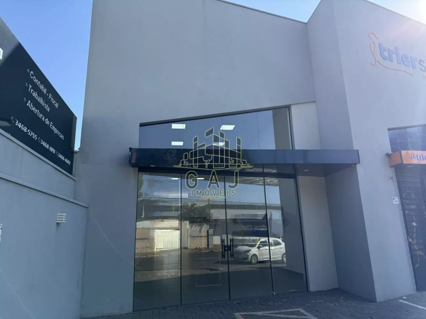 São 227m² de área de construção, com banheiros masculinos e femininos, mezanino e 3 vagas para atendimentos de clientes.