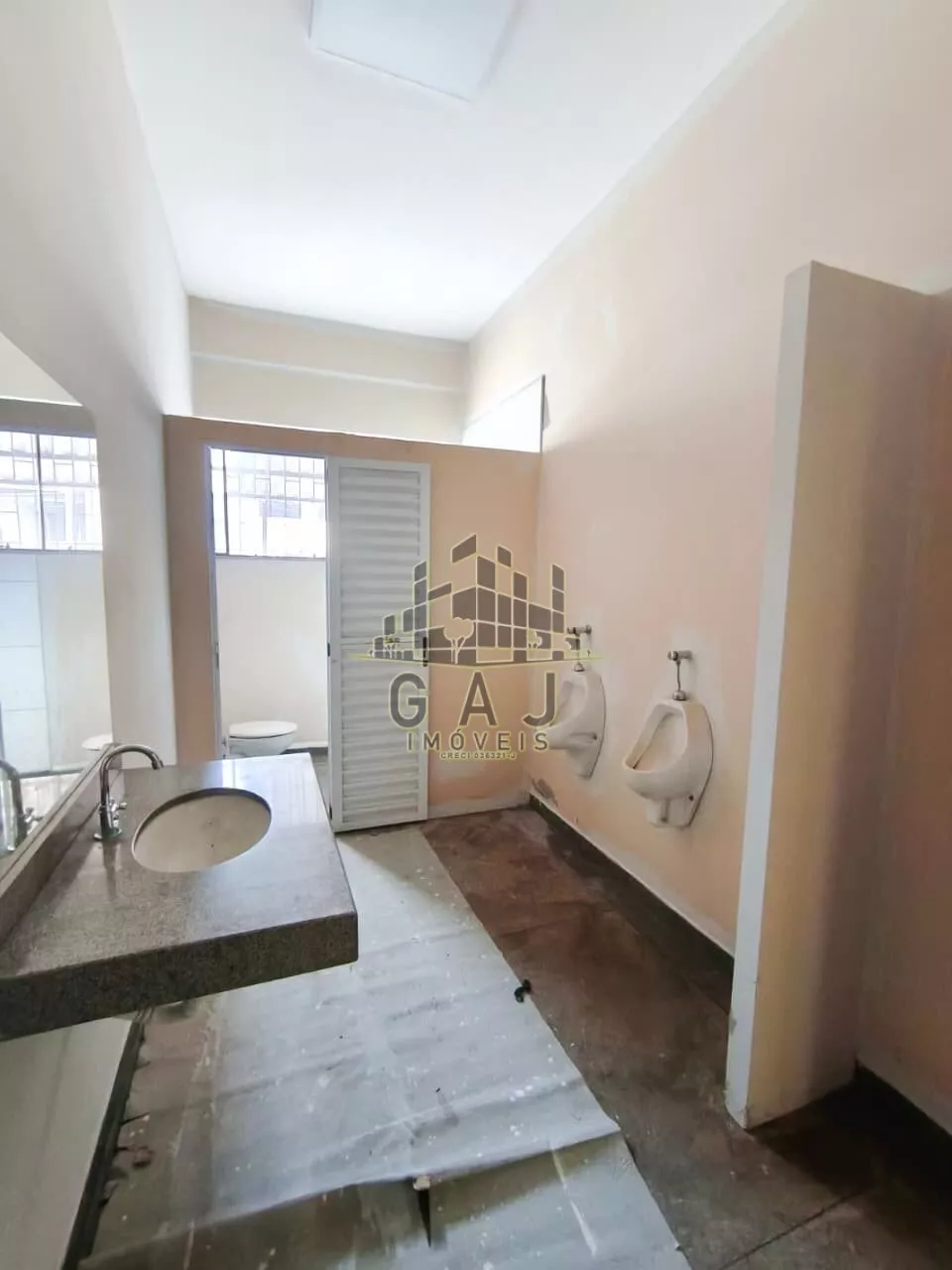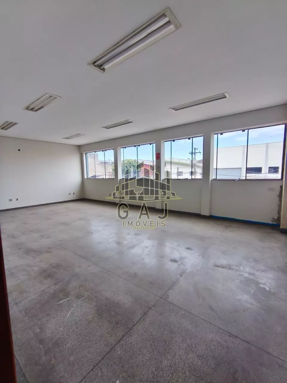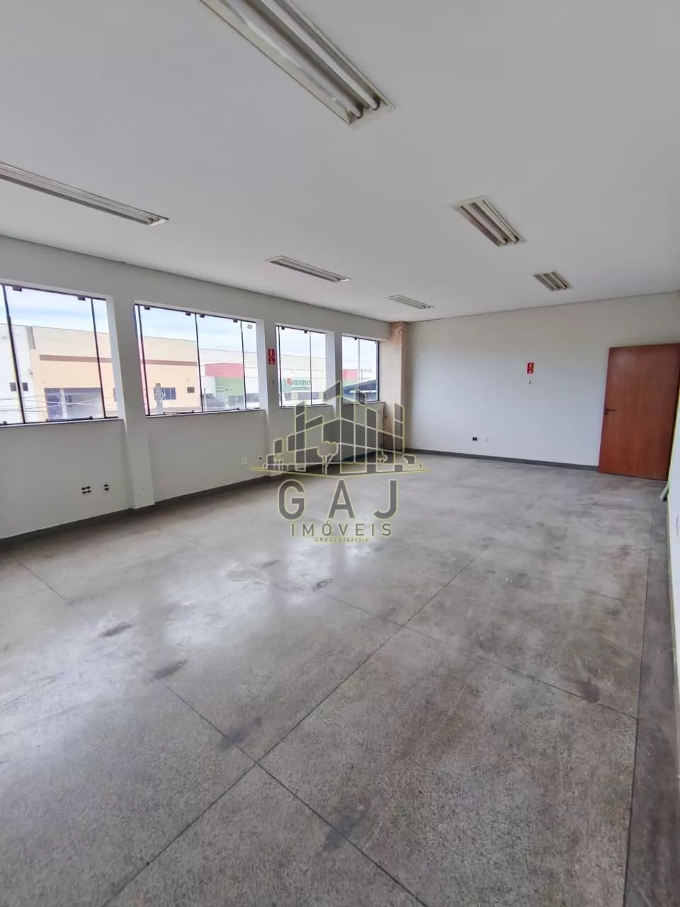 Salão plano, com pé direito de aproximadamente 9 metros, piso industrial com epóxi novo, recepção com banheiro, vestiários, escritório superior com banheiro.