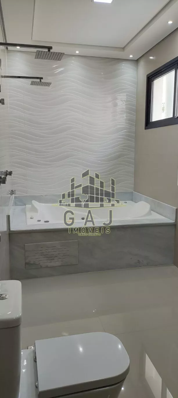 Suíte master completa, com sacada, amplo closet e banheira de hidromassagem.