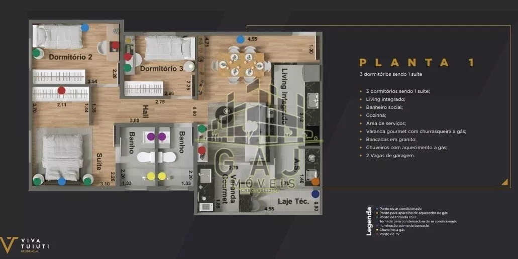 Conta com duas vagas de garagem cobertas (diferencial). Ponto de ar condicionado, chuveiro a gás, pontos para tomadas usb entre outras comodidades fazem parte dos destaques do imóvel.