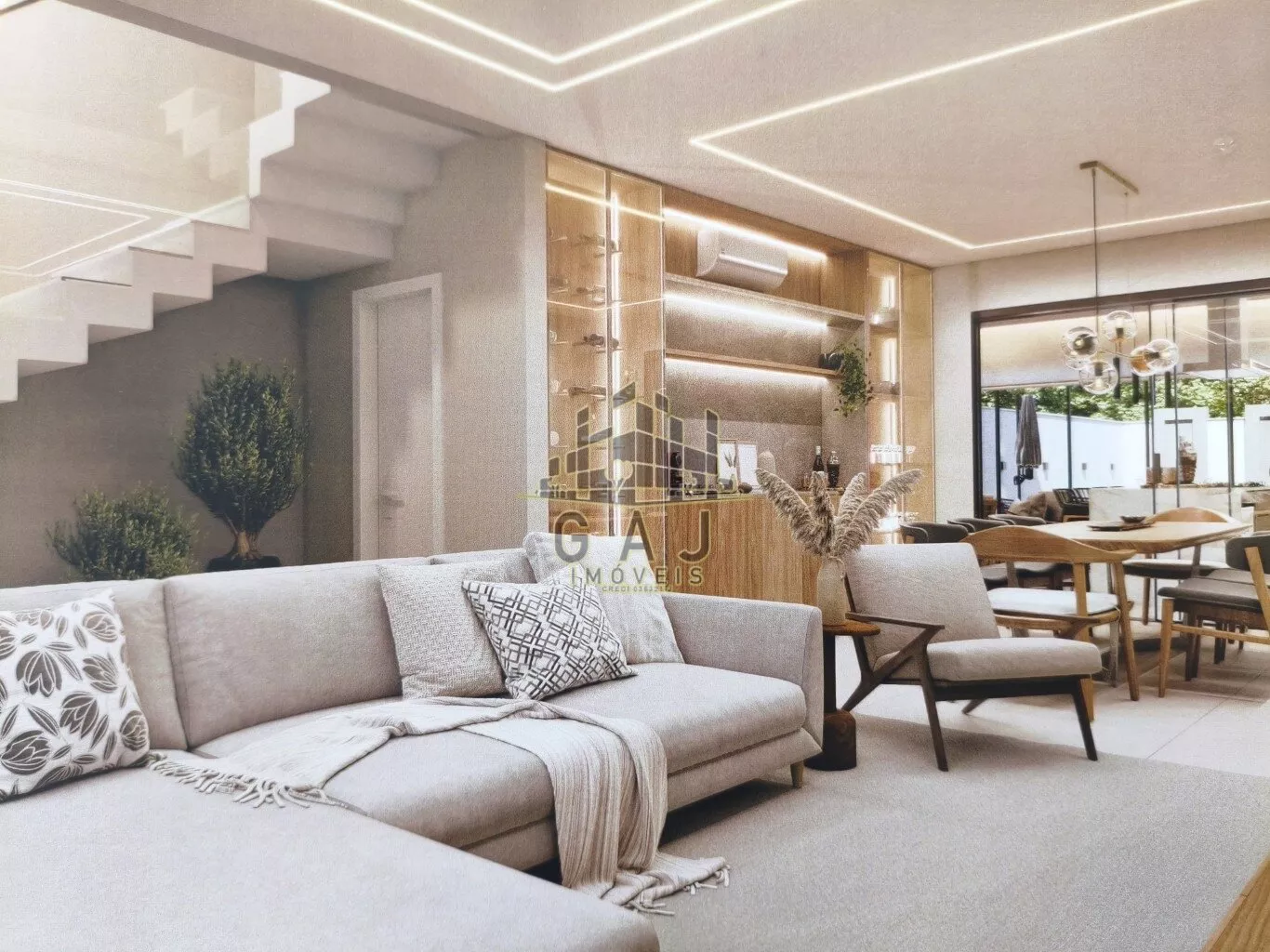 São 188 m² de terreno, são 211m² de uma excelente construção. A iluminação deslumbrante combina perfeitamente com a alta qualidade dos acabamentos, ampla sala com lavabo, cozinha integrada a sala de jantar. Ilha em pedra, churrasqueira de inox na cozinha, e área gourmet.