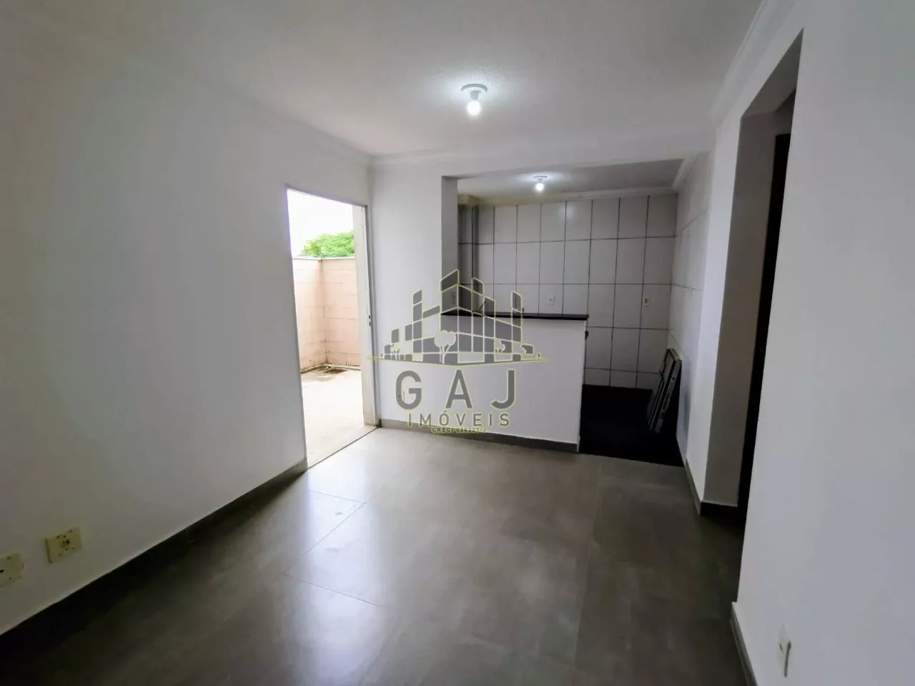 Sala com dois ambientes, estar e jantar, cozinha integrada com área de serviço, 2 dormitórios, 1 Banheiro com box, 1 vaga de garagem coberta e o principal Gardem (quintal privado)