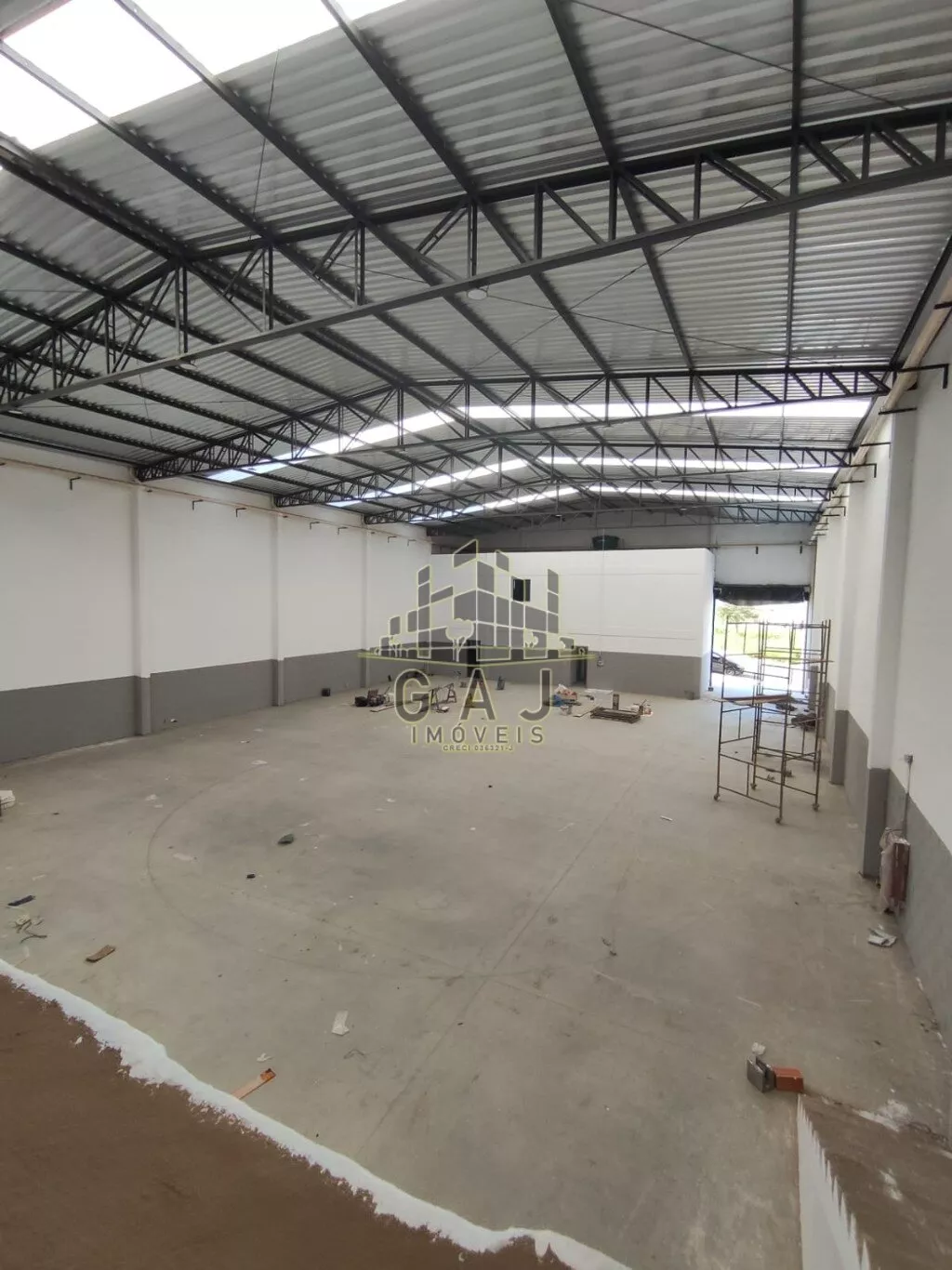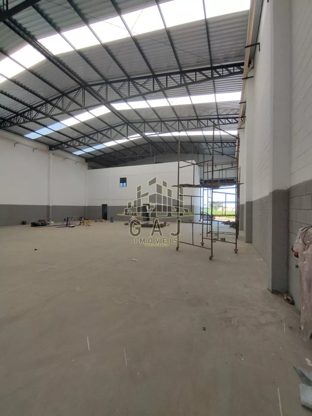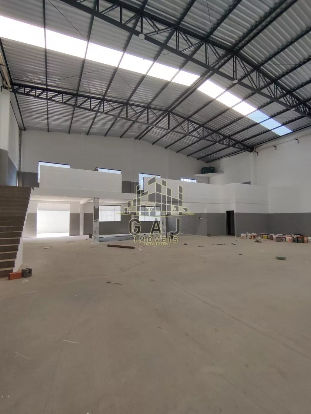 Amplo espaço de salão com 1015m² de área útil + área externa. Terreno com 1000m². Pé direito de 6 metros de altura. Sistema de bombeiros completo, com caixa d’água de 20mil litros. Amplo espaço de recepção, 02 vestiários, copa e um amplo escritório com dois banheiros no pavimento superior. Entrada plana e ampla, com 03 vagas de estacionamento e muro na frente para apoio de estacionamentos de funcionários.
