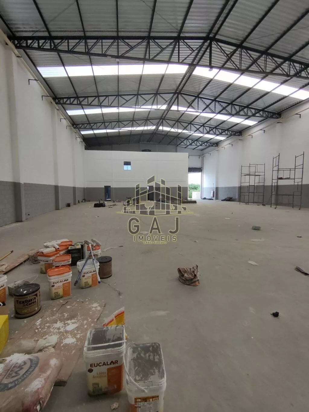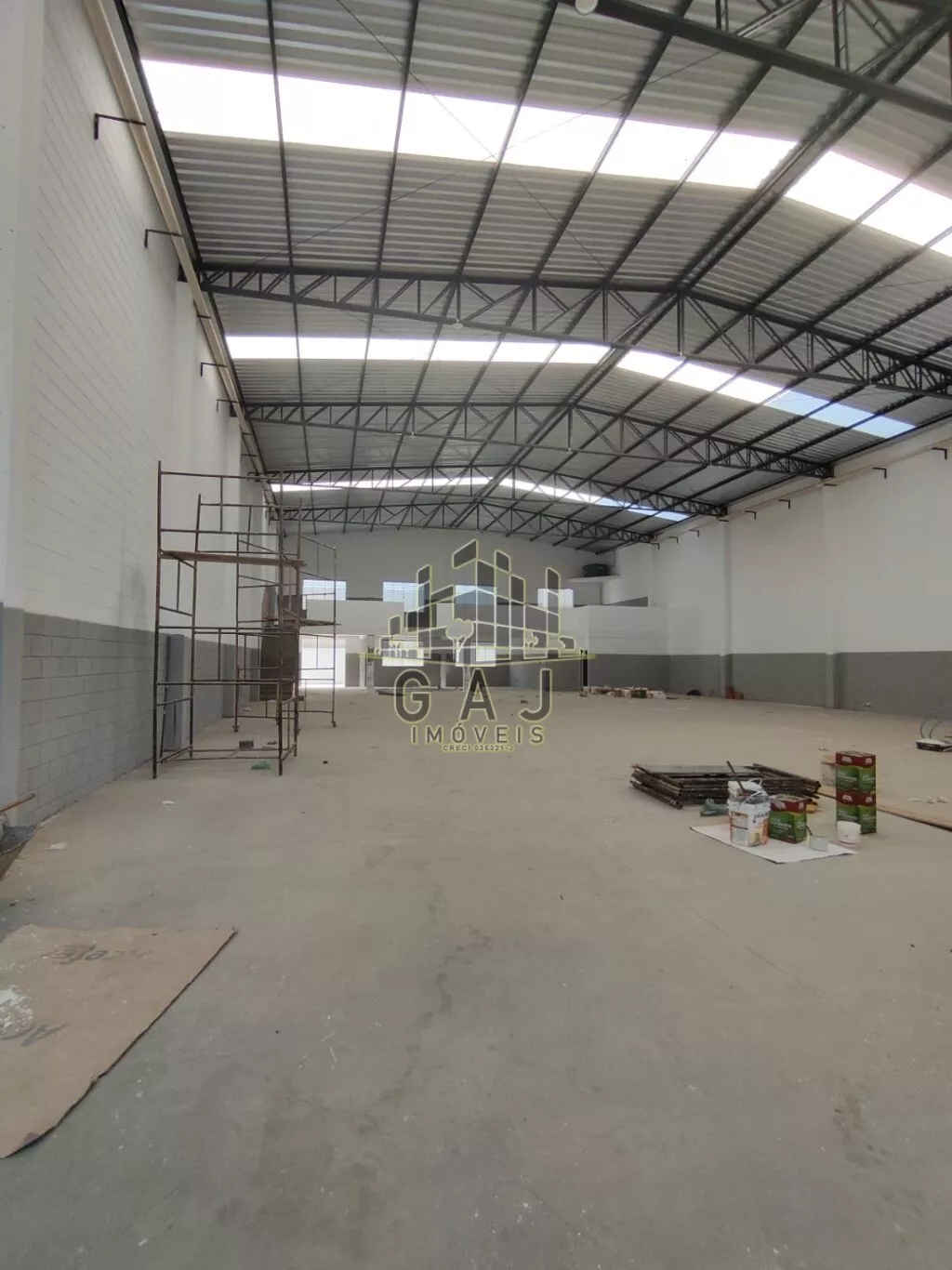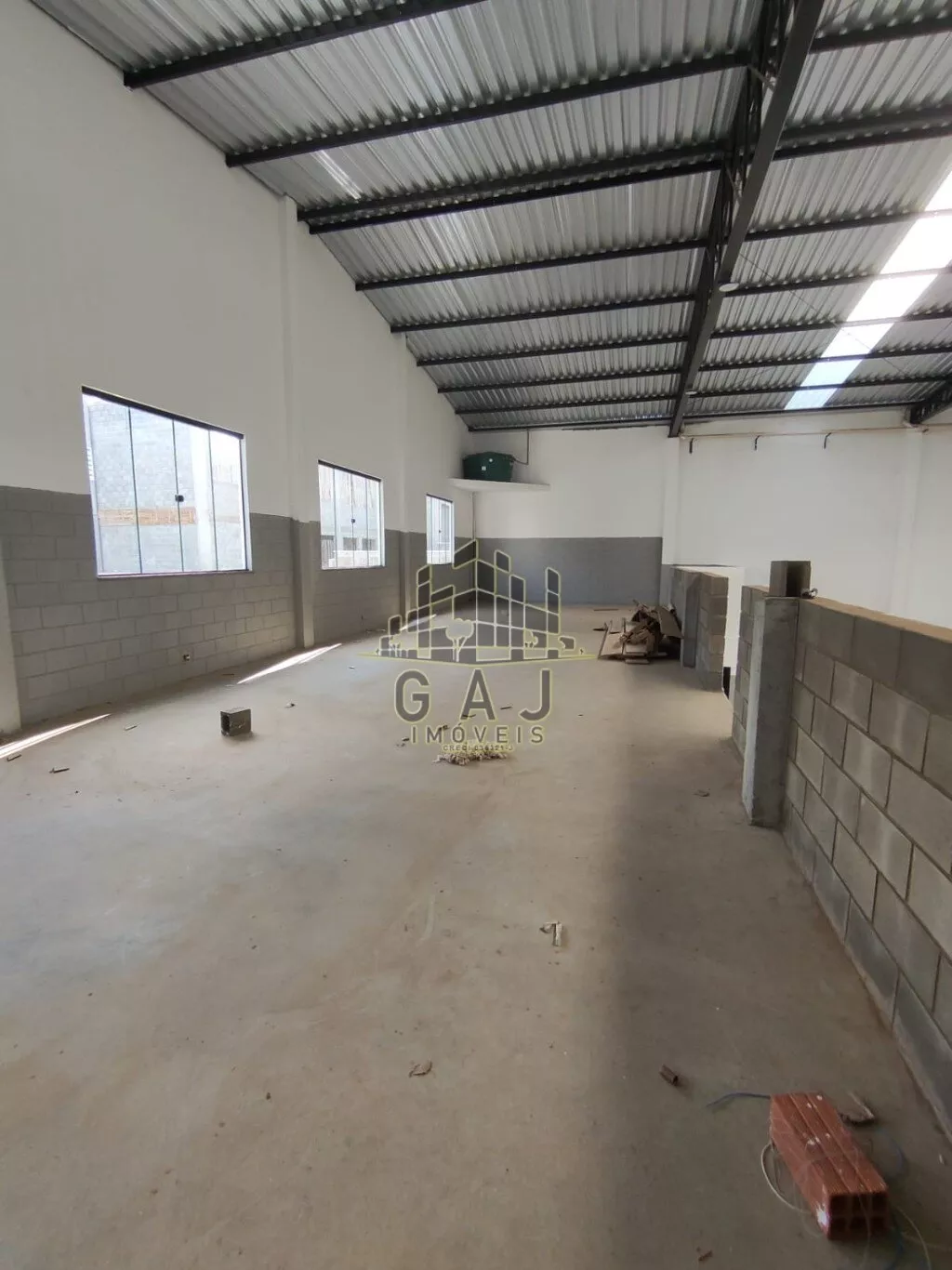 Amplo espaço de salão com 1015m² de área útil + área externa. Terreno com 1000m². Pé direito de 6 metros de altura. Sistema de bombeiros completo, com caixa d’água de 20mil litros. Amplo espaço de recepção, 02 vestiários, copa e um amplo escritório com dois banheiros no pavimento superior. Entrada plana e ampla, com 03 vagas de estacionamento e muro na frente para apoio de estacionamentos de funcionários.