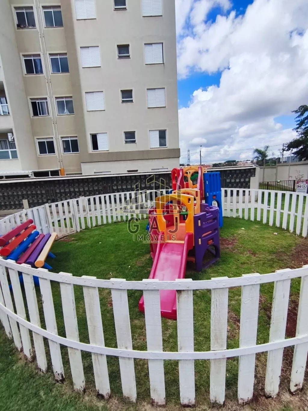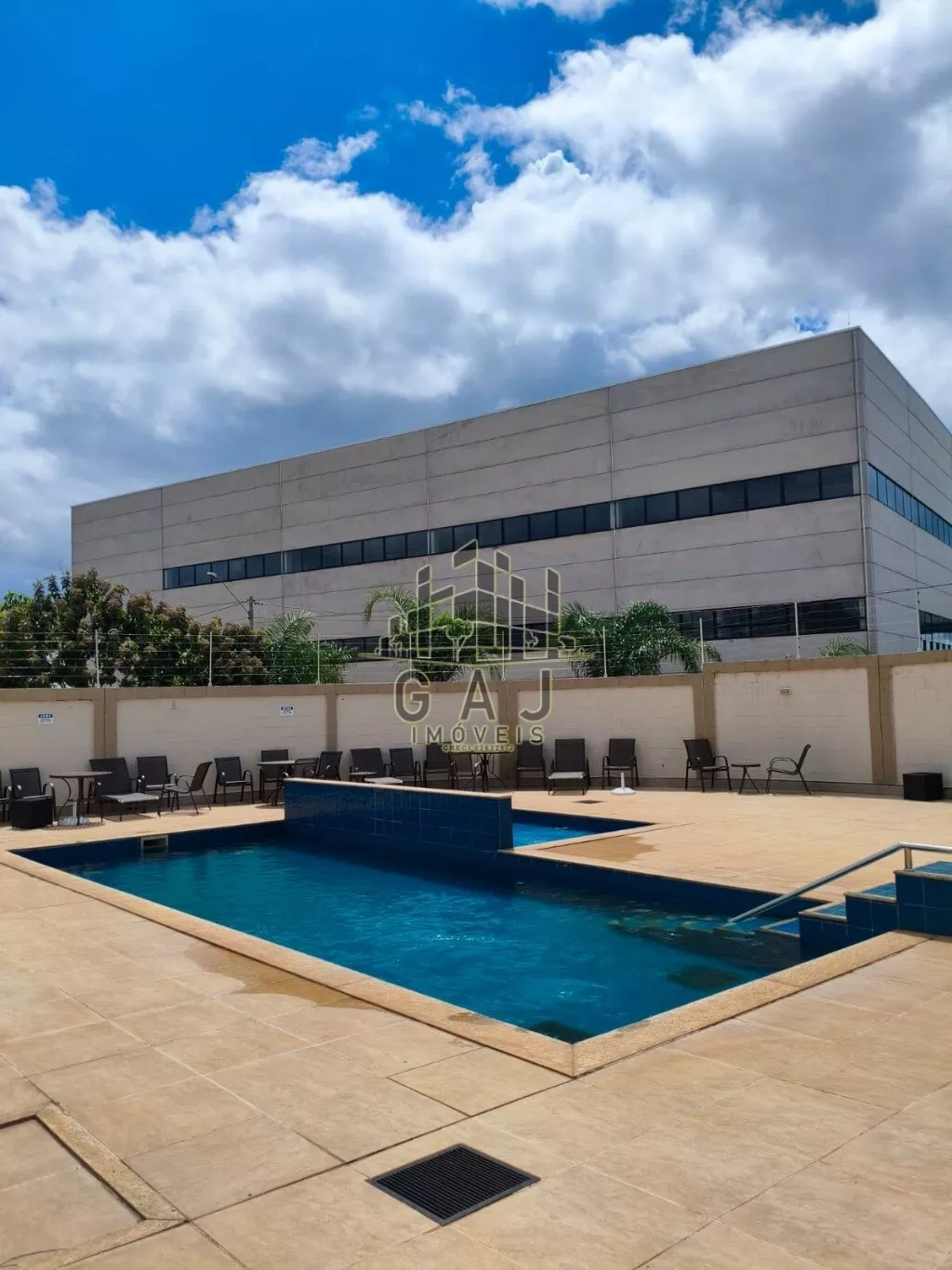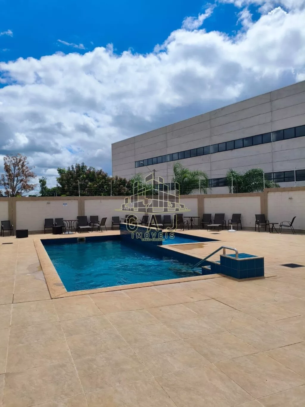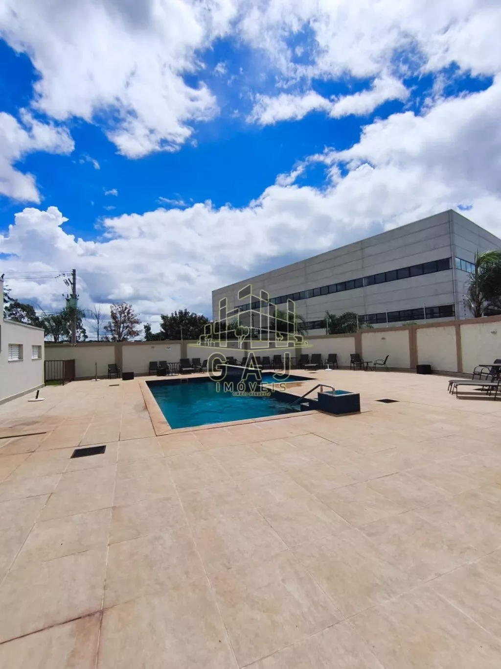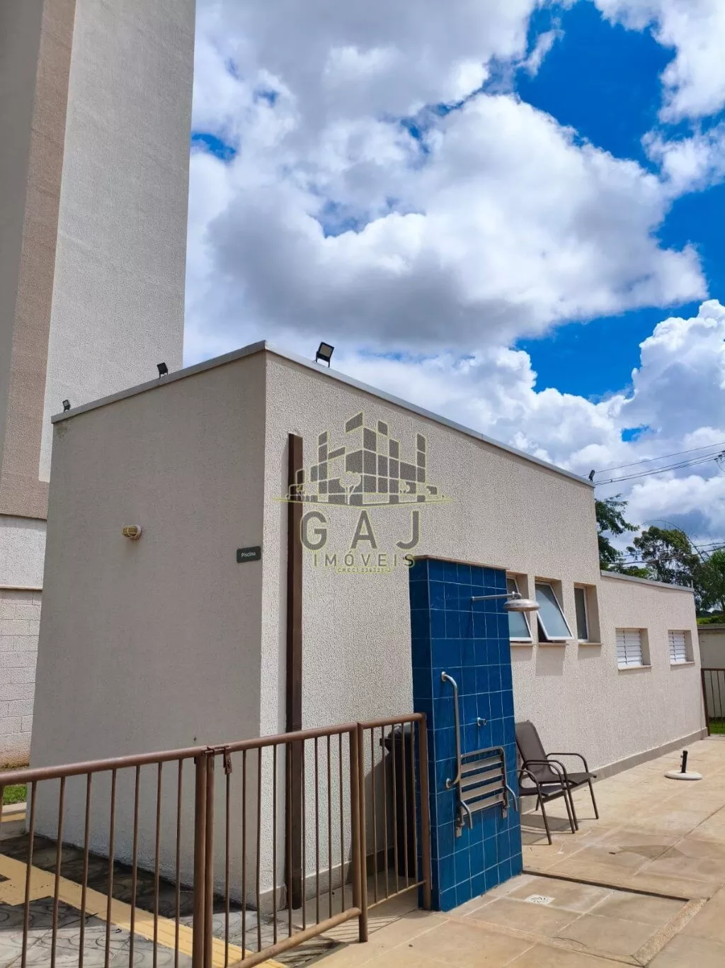 O apartamento é térreo, porém muito privativo, condomínio completo com piscina.