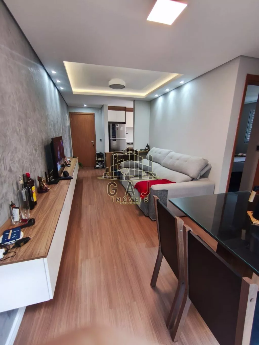 São 02 amplos dormitórios com teto rebaixado, iluminação completa e moderna. Cozinha com moveis planejados, amplo espaço, pois possui quintal.