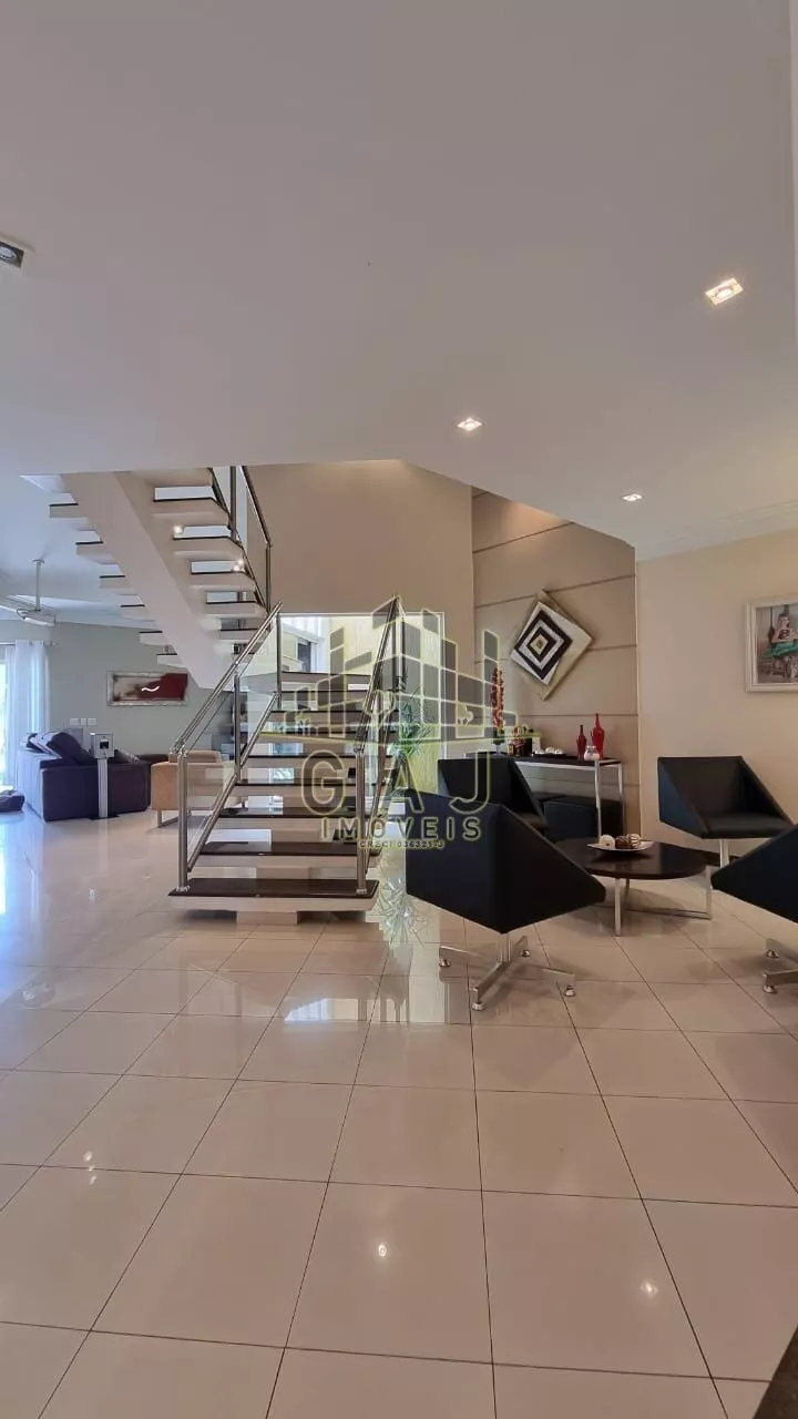 Parte superior com sacadas, 03 salas de estar, jantar, social, banheiro social, cozinha, despensa, lavanderia, escritório e jardim de inverno;