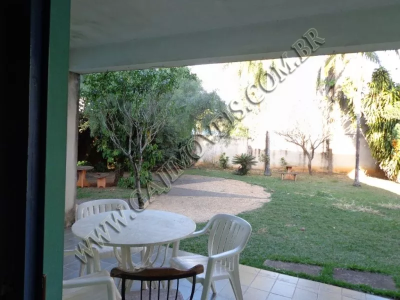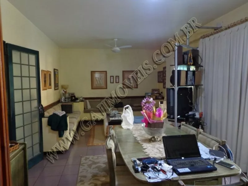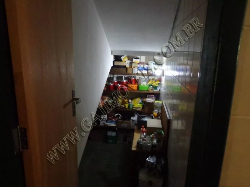 Piso terreo: hall, sala de estar, lavabo, escritório, sala de jantar e de TV, varanda, cozinha, 2 despensas, lavanderia fechada, garagem para 2 veículos coberta e grande quintal com árvores.
