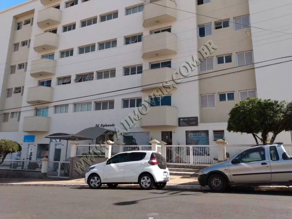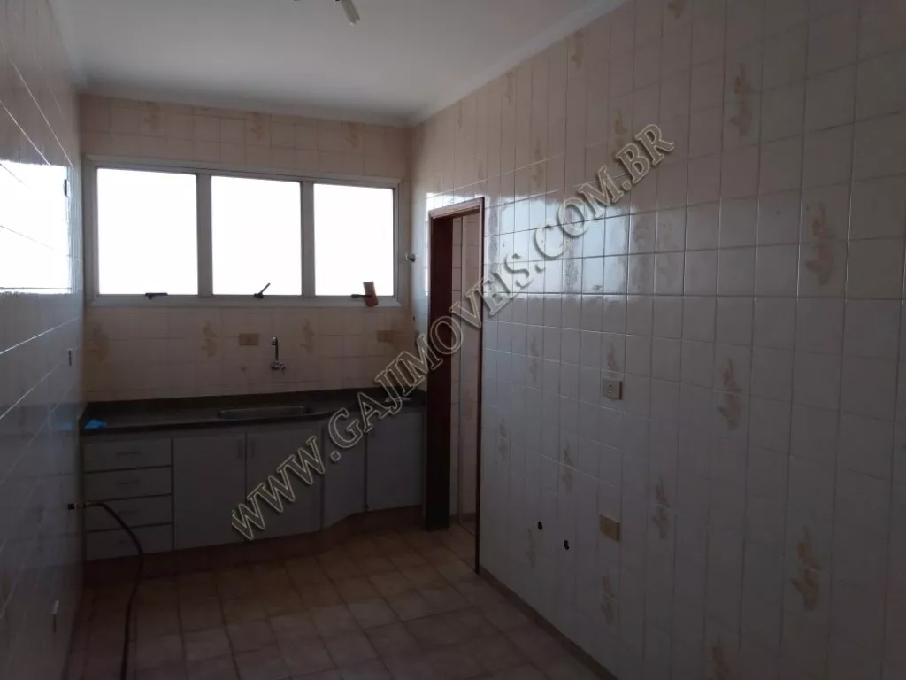 Apartamento no primeiro andar, cozinha com pia e gabinete, área serviço com banheiro, sala com sacada, 1 dormitório sem armário, 1 dormitório com armário planejado, 1 suíte com armário e sacada, banheiro social, 2 vagas de garagem. Piso carpete de madeira e frio.
