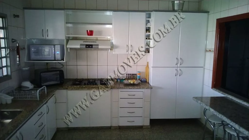 Andar principal: 3 dormitórios sendo 1 suíte, todos com armários embutidos. Sala de TV, sala de jantar, lavatório de mão, cozinha planejada, banheiro social, lavabo, lavanderia com banheiro, quarto de despejo.