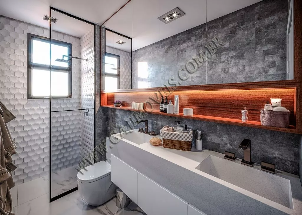1 BANHEIRO SOCIAL COM OPÇÃO PARA MAIS UM LAVABO.