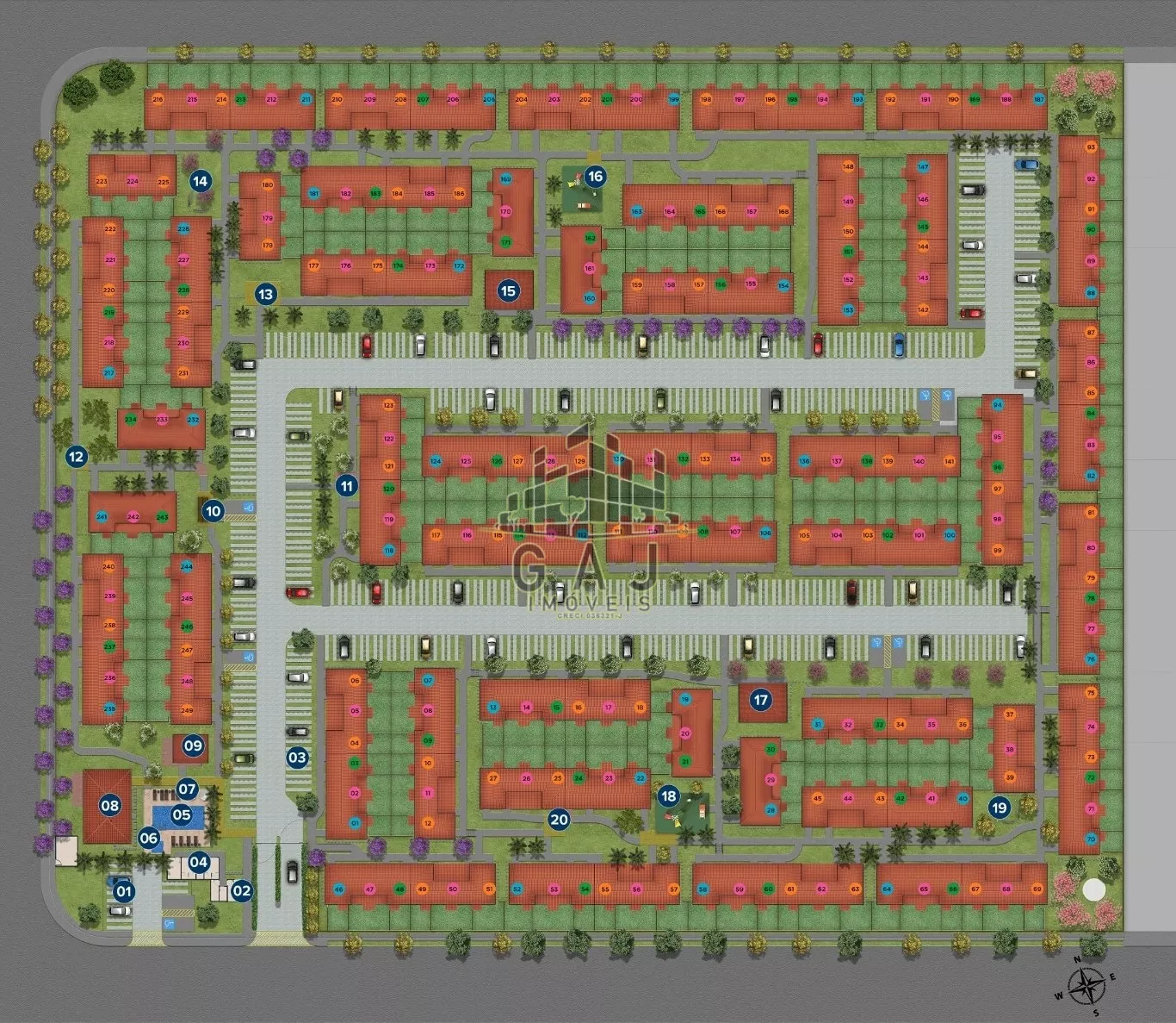 Sua localização conta com uma ampla área verde em seu entorno e o condomínio oferece uma convivência em comunidade.