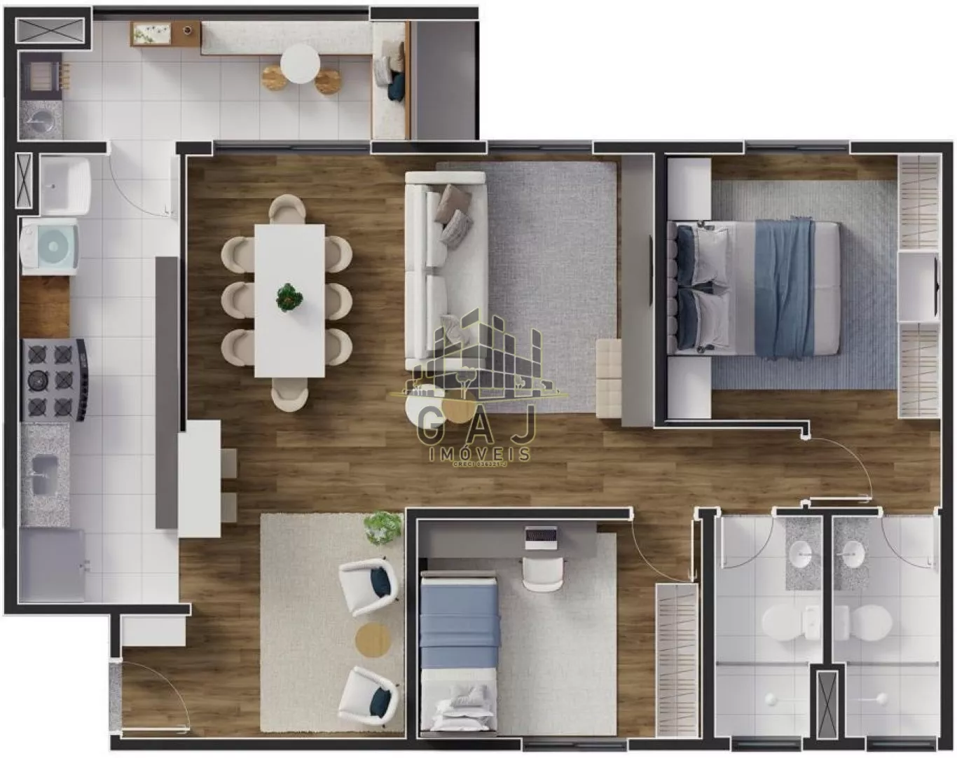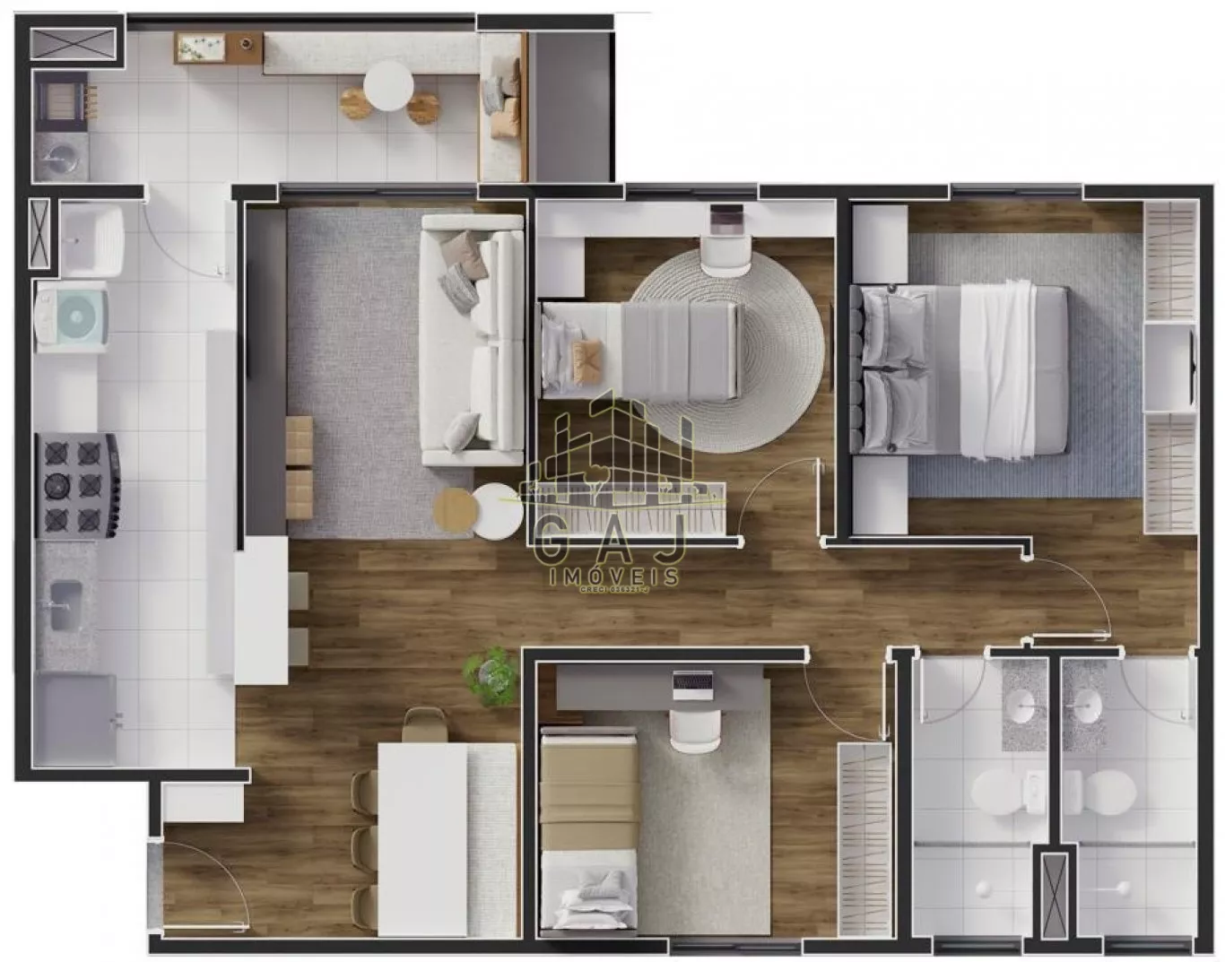 Apartamentos com 82,27m².