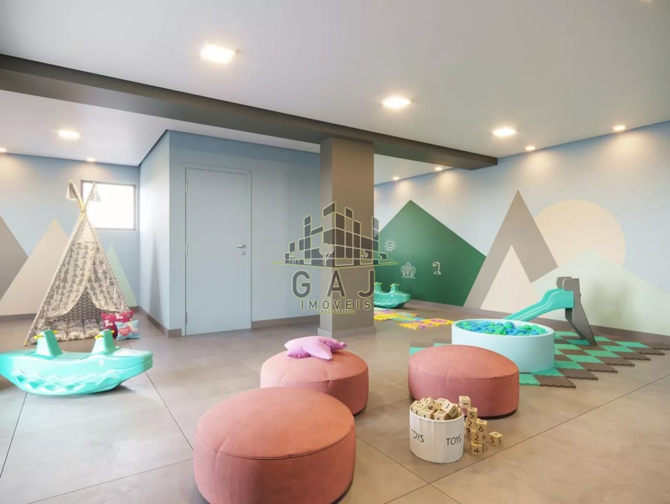 Sala de jogos, espaço equipado e decorado;