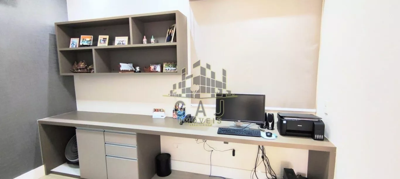 No segundo pavimento, temos 3 dormitórios: um está como escritório com móveis planejados, outro em forma de dormitório com móveis planejados, sacada e esquadrilhas automáticas, ambos tem uma banheiro amplo auxilia com pia em pedra. A suíte máster, completa com móveis planejados, closet e amplo banheiro.